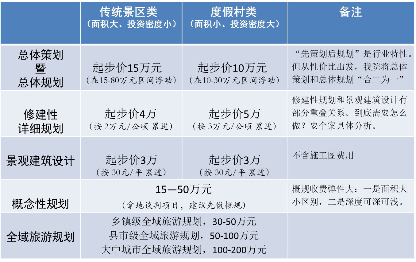 首先必須說明,旅游規(guī)劃收費并無所謂的“標準價格”,但很多客戶還是表示希望“知根知底”,所以至道規(guī)劃院就結(jié)合多年經(jīng)驗及行業(yè)...